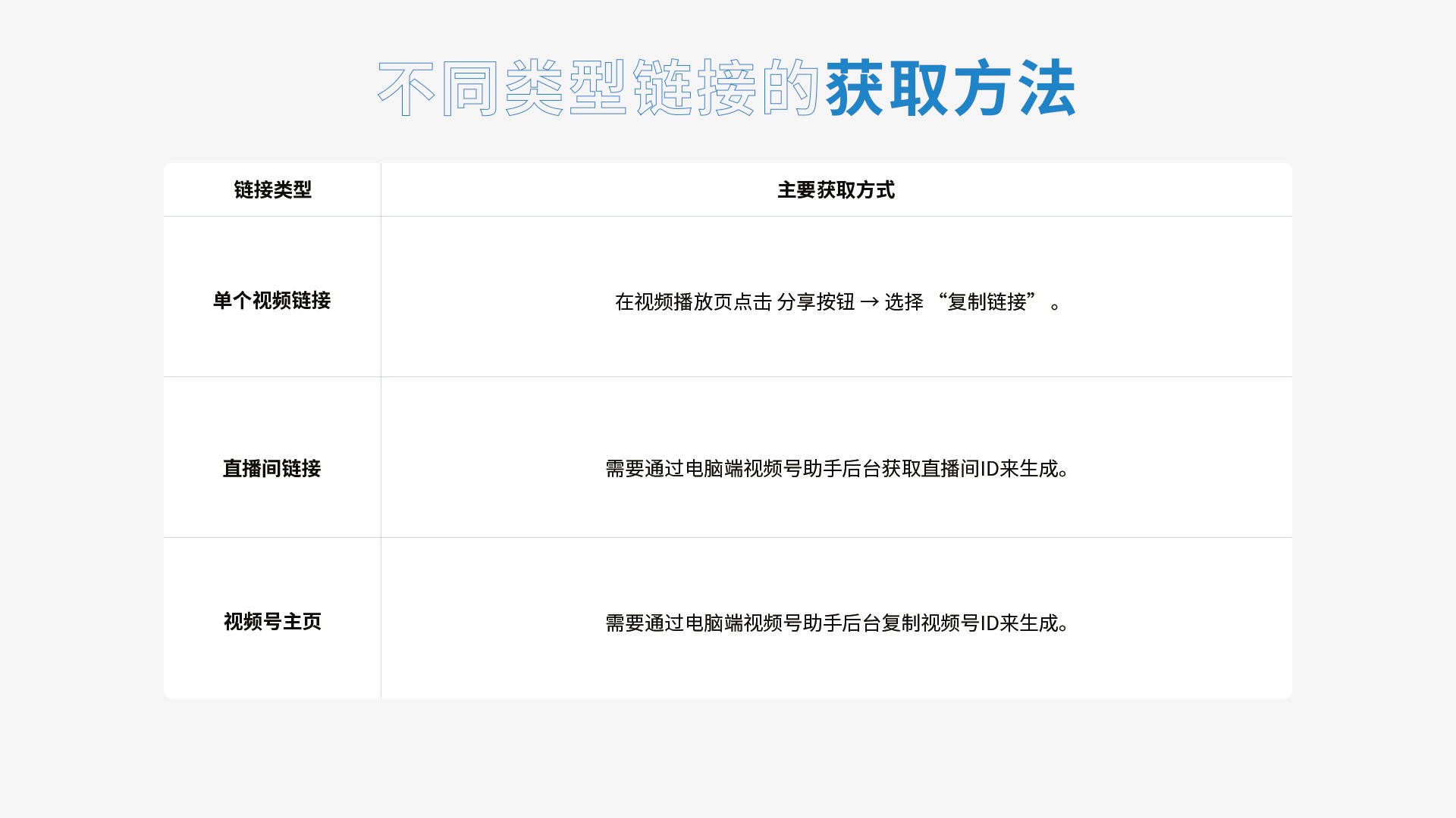 2. 对于直播间链接和主页链接,你都需要在后台找到并复制对应的视频号ID。